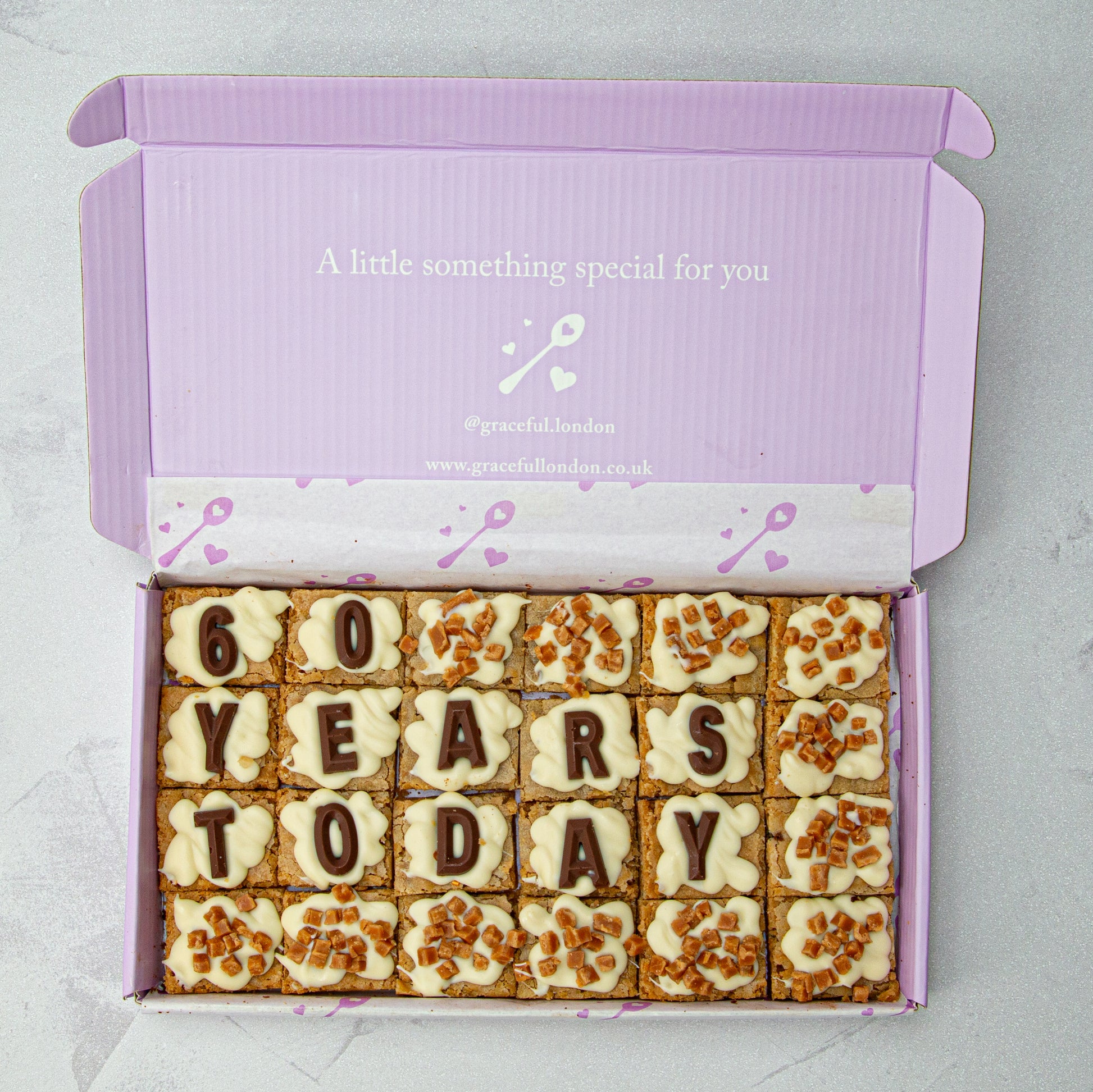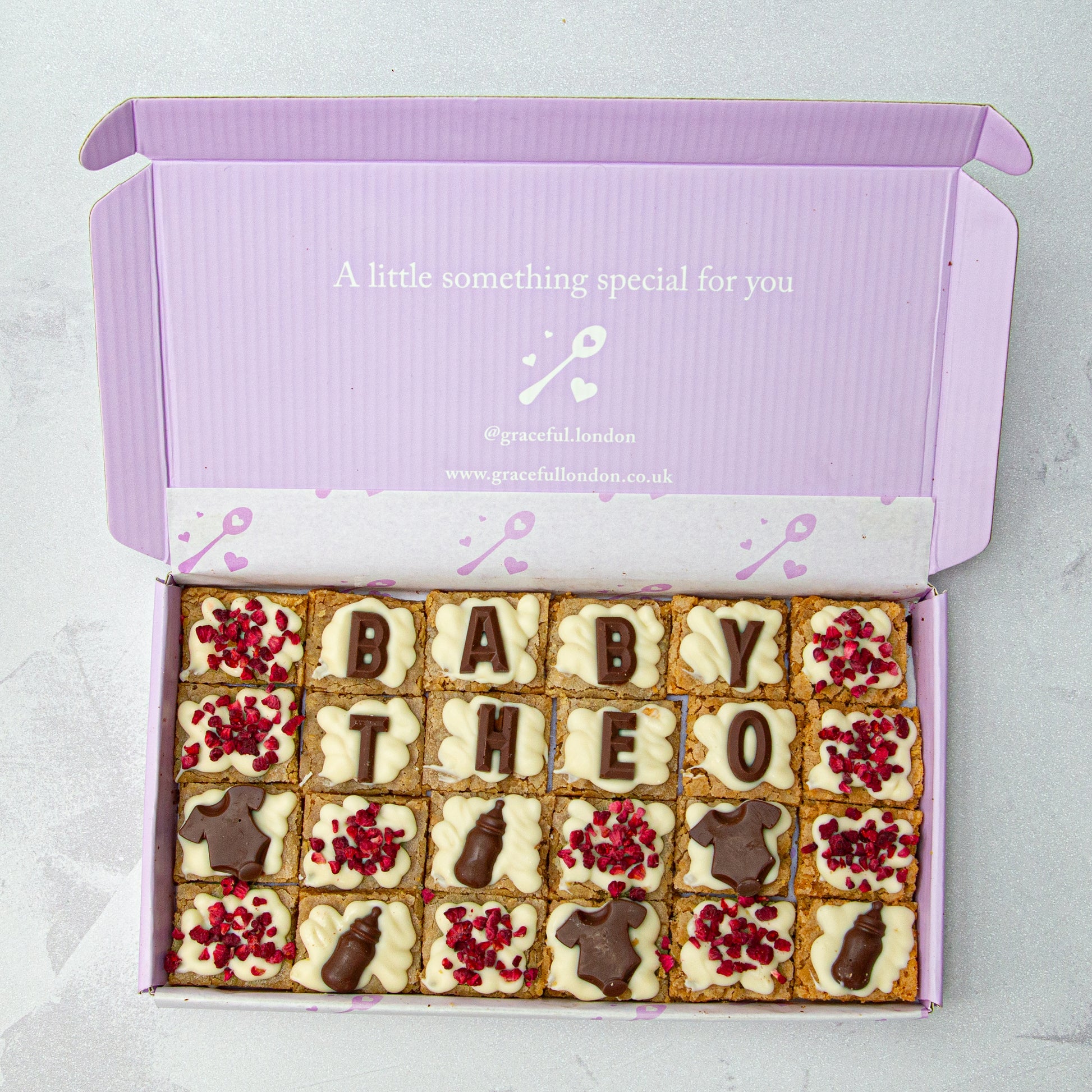 Unwrap and experience the joy of our brownie/blondie bites with that extra special personal touch. Pick your favourite flavour, choose your chocolate icons, and personalise your thoughtful message. Our boxes are perfect for sharing or savouring solo. Please note for the personalised bites you don't need to choose sprinkles as the matching sprinkles for your flavour choice will be used.