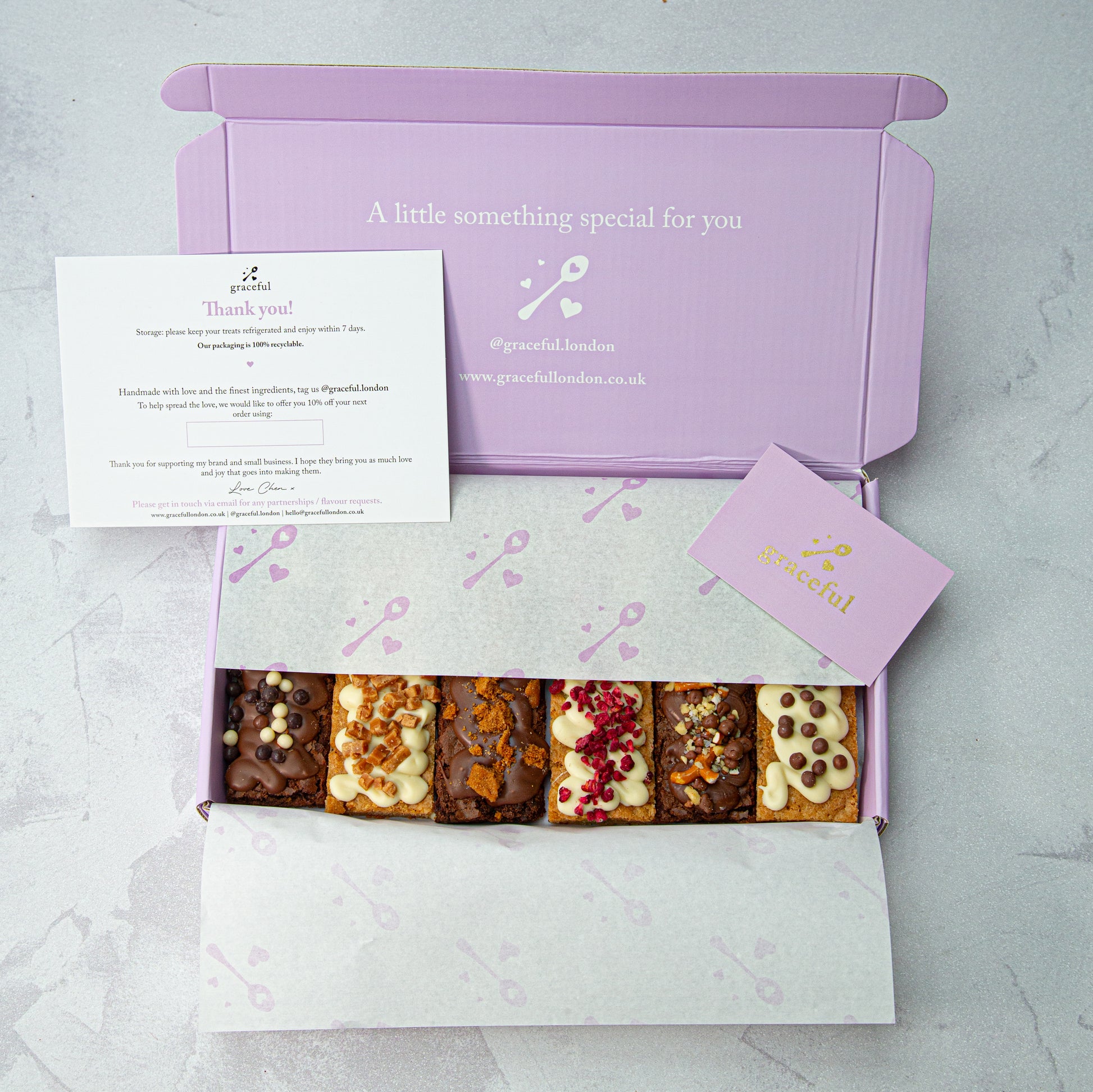 Can’t decide between brownies or blondies? In our mixed boxes you get the best of both worlds. Unwrap and experience the joy of our brownie & blondie box and indulge in our signature bestselling flavours. The bars have been perfectly crafted to be the ideal shape for dipping in a cup of tea. Our boxes are perfect for sharing or savouring solo.