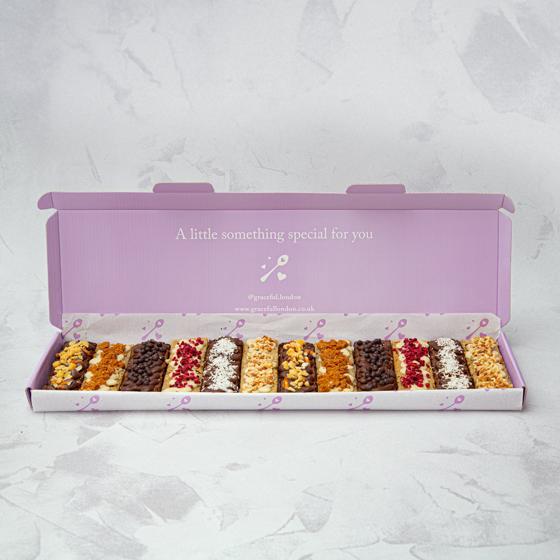 Can’t decide between brownies or blondies? In our mixed boxes you get the best of both worlds. Unwrap and experience the joy of our brownie & blondie box and indulge in our signature bestselling flavours. The bars have been perfectly crafted to be the ideal shape for dipping in a cup of tea. Our boxes are perfect for sharing or savouring solo.