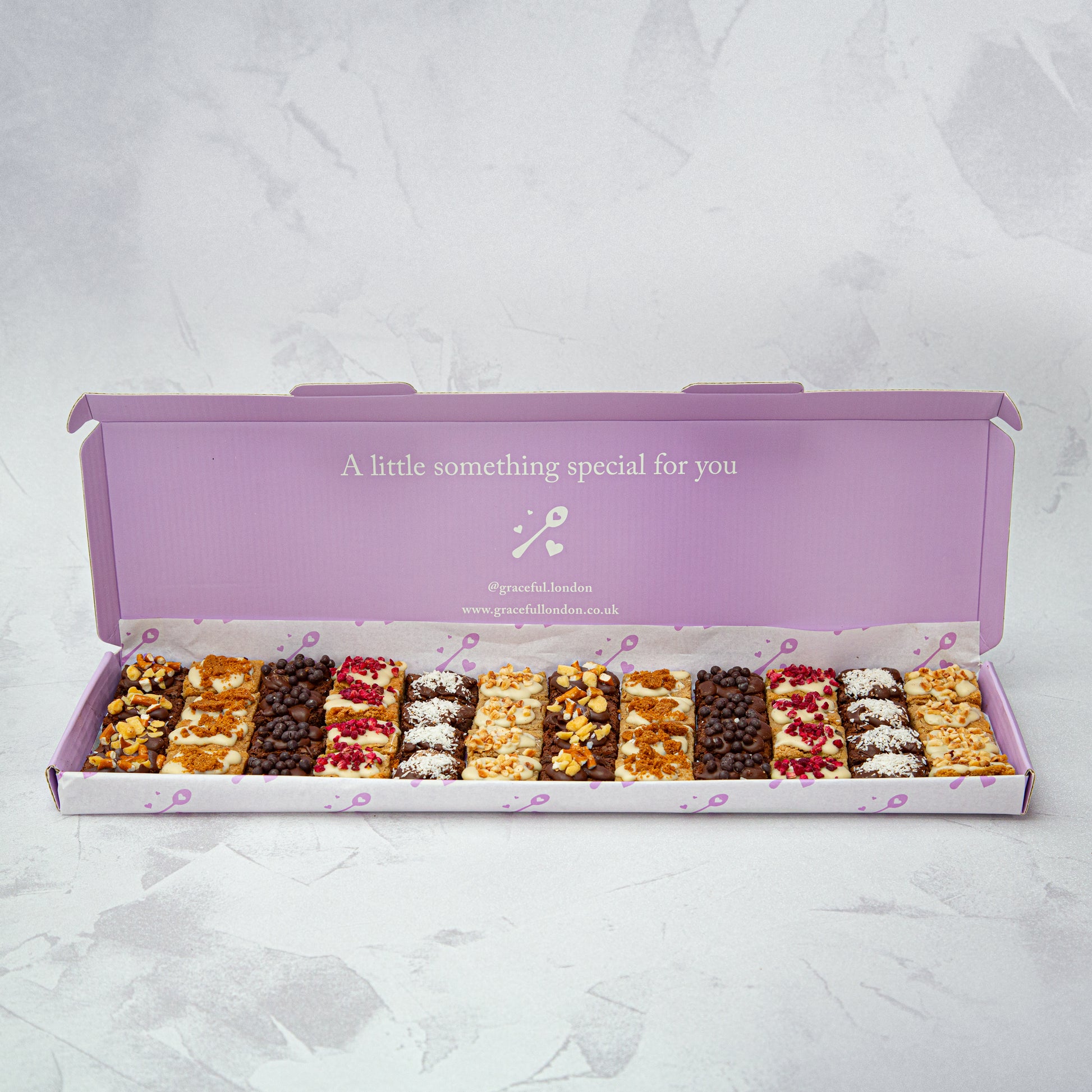 Can’t decide between brownies or blondies? In our mixed boxes you get the best of both worlds. Unwrap and experience the joy of our brownie & blondie box and indulge in our signature bestselling flavours. The bites are the perfect bitesize mouthful. Our boxes are perfect for sharing or savouring solo.