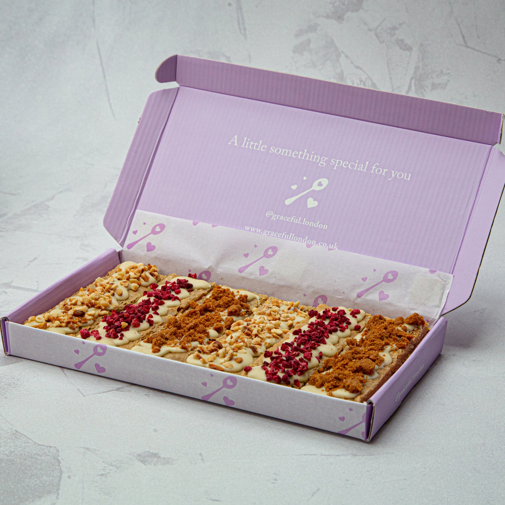 Unwrap and experience the joy of our blondie box and indulge in our signature bestselling flavours. The bars have been perfectly crafted to be the ideal shape for dipping in a cup of tea. Our boxes are perfect for sharing or savouring solo.