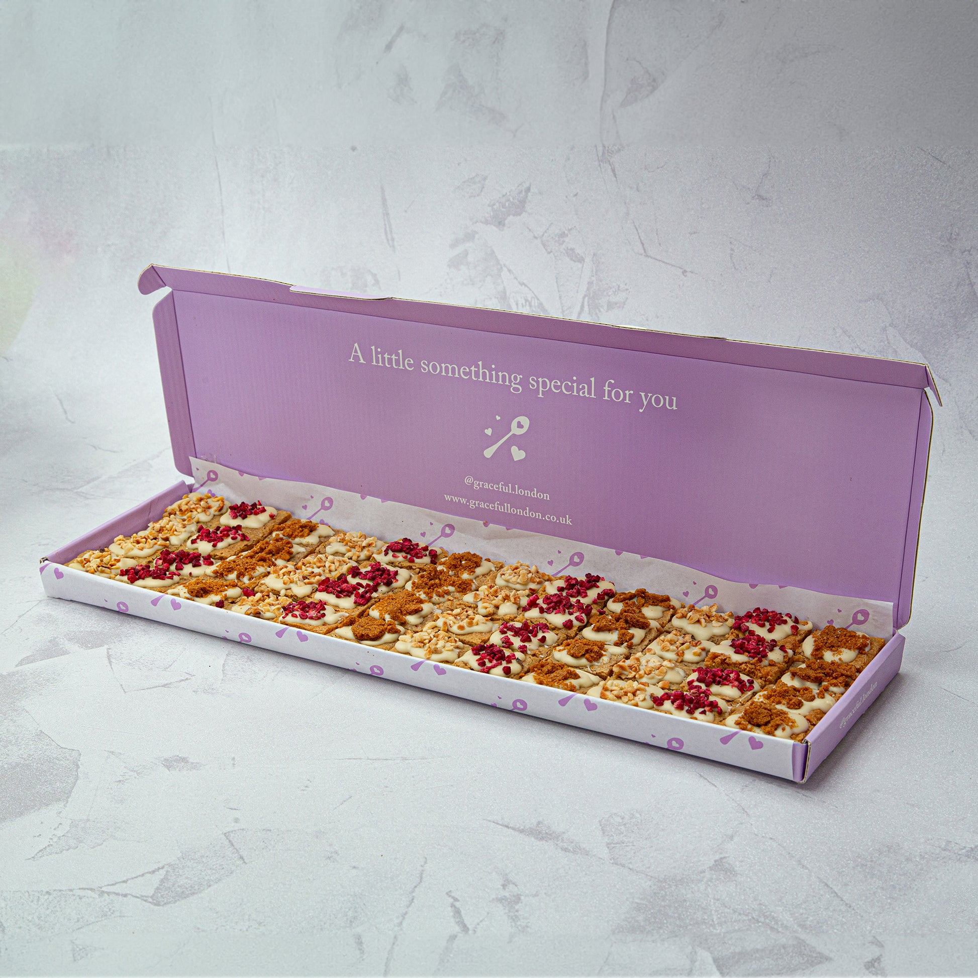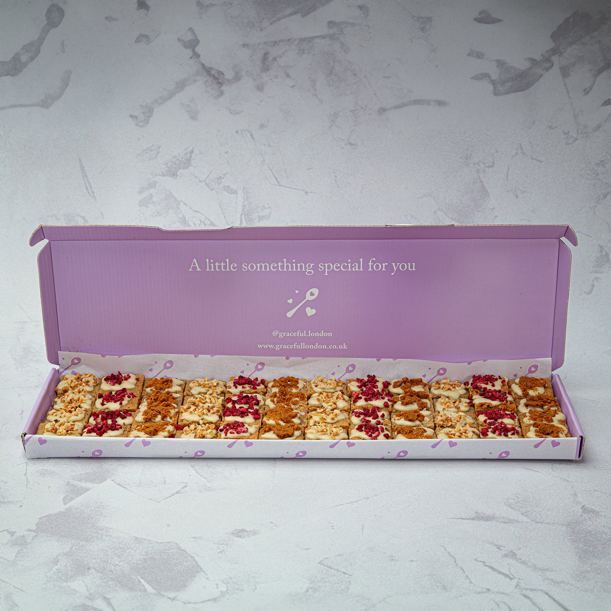 Unwrap and experience the joy of our blondie box and indulge in our signature bestselling flavours. The bites are the perfect bitesize mouthful. Our boxes are perfect for sharing or savouring solo.